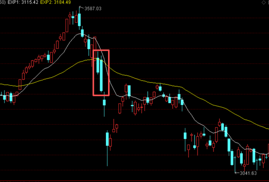 2015年6月26日跌破黄线——这一次是股灾,下一个交易日再次暴跌后迎来反弹一日游,之后再次大跌,直到6月26日之后的第9个交易日才阶段见底(阶段见底后,会有阶段反弹且至少一个月都没有创新低)。