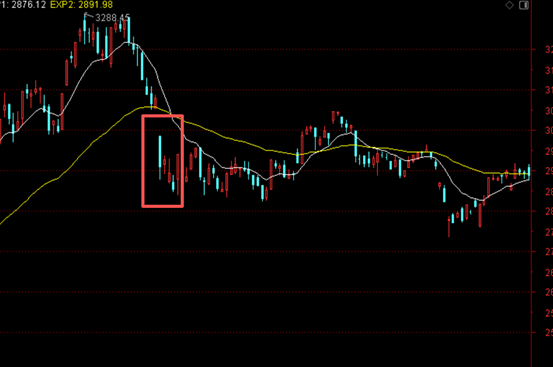 2019年5月6日跌破黄线(光标处)——这一次比较独特,此后一个月多月,没有明显下跌也没有明显反弹。